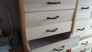 効率的な収納のために、小物が整理しやすい底の浅い引き出しはどうしても必要です。 以前には、無印良品の紙製4段引き出しの前面に100均の桐板を貼り付け、100均の取っ手をつけたものを作りました。 もうひとつくらい作ろうと思 … 続きを読む スタッキングシェルフ互換収納の引き出しをDIY(その6:プラダン利用で4段)